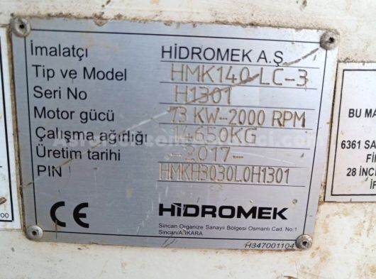 MAKİNA 2017 MODEL HİDROMEK 140 LC SERİSİ OLUP ORJİNAL 11.000 SAATTEDİR..600.000 TL FATURASI FİYATA DAHİLDİR...FİYAT VE FATURA HARİÇ +50.000 TL KOMİSYONLUDUR...FİYAT:.3.250.000.TL...TLF::0532 303 0550...
